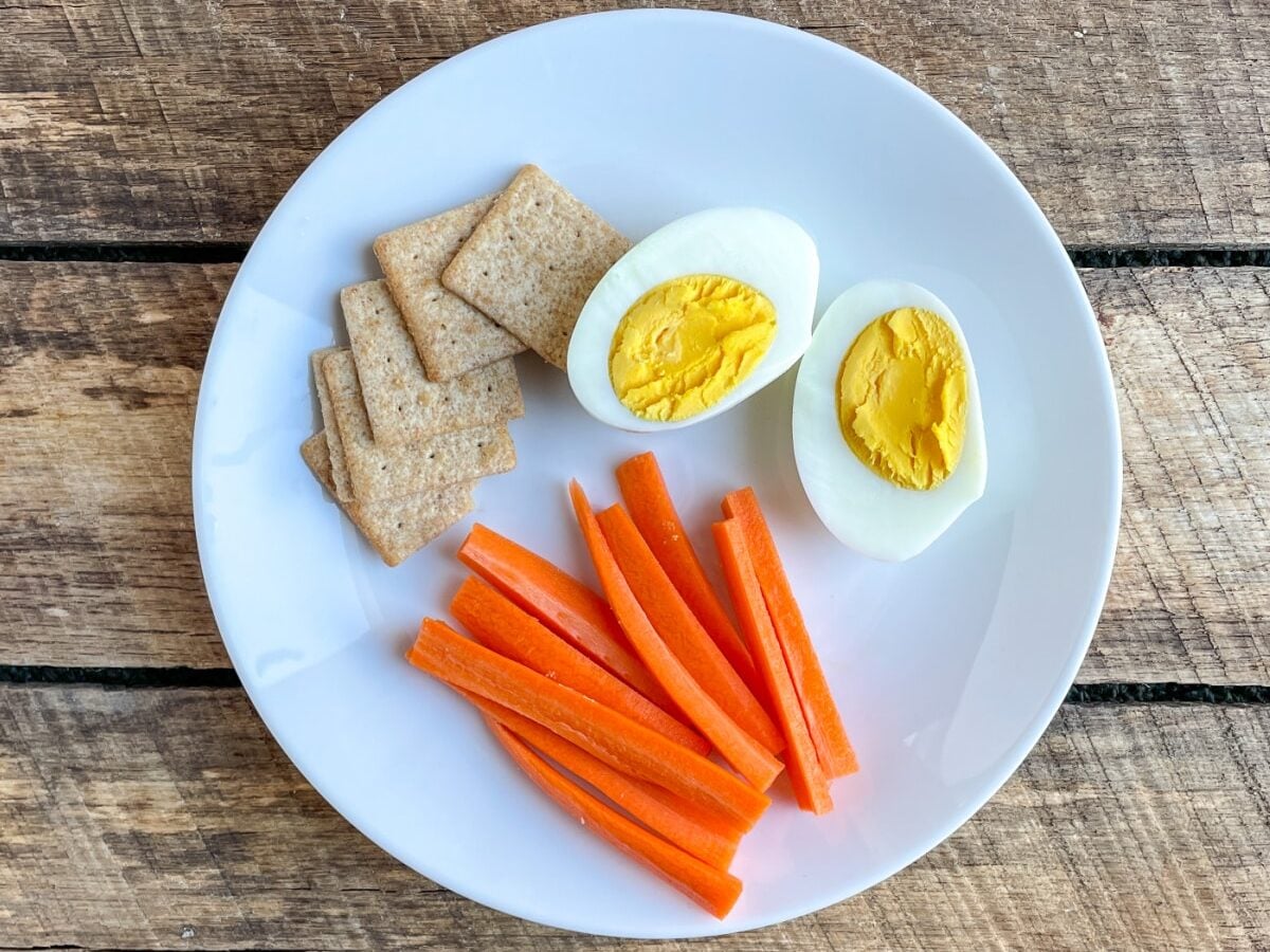 - Hard-boiled egg: Both the white AND the yolk contain protein, so don’t skip the yolk.